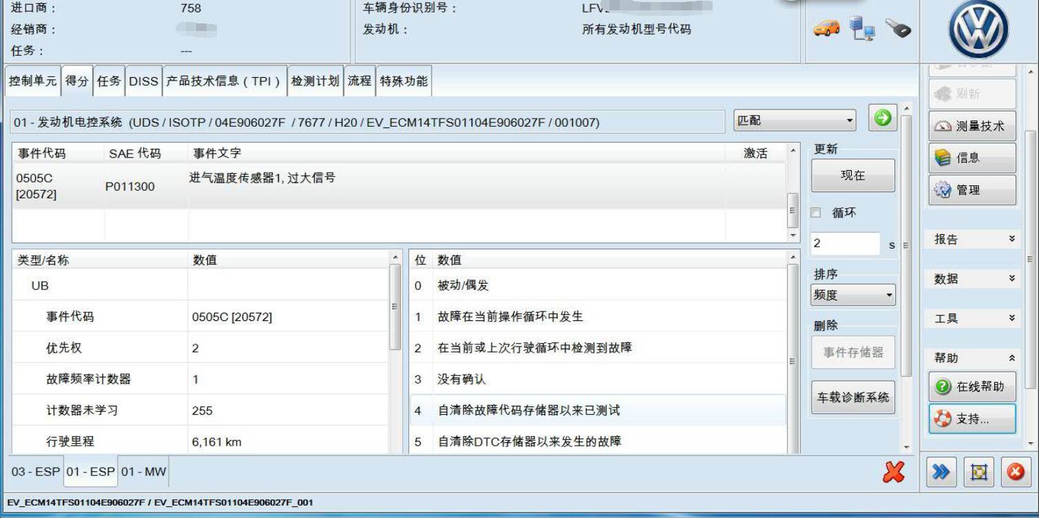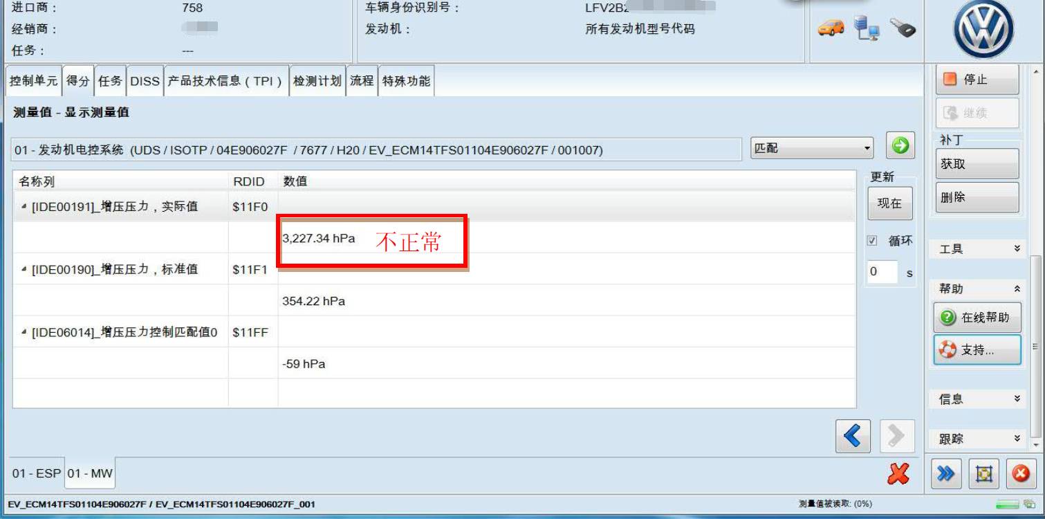 故障总结:维修故障车辆时,一是根据故障码进行分析,二是通过检测计划或添加检测计划进行引导分析(ODIS的检测计划目前非常强大),三是根据故障现象借助数据流来进行分析。