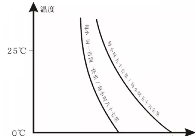 如果轮胎时速平均80公里,其寿命在4℃时为150%,在30℃时将降低2/3而只有50%。换句话说,4℃时磨耗100克橡胶,当温度提高到30℃时,将磨耗300克;也就是磨耗量将增加三倍。