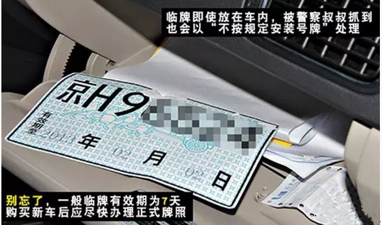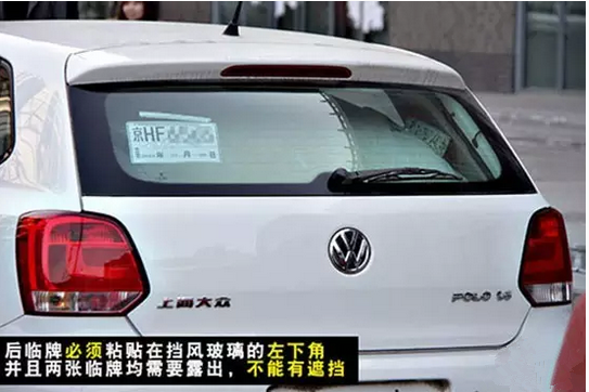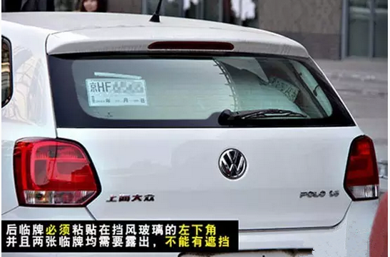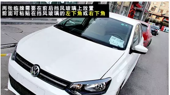 领到临时号牌后并不是就可以开车上路行驶了,在悬挂临时号牌时也是有学问的。两张临时号牌要一前一后贴在挡风玻璃上,缺一不可。