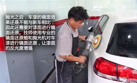 抛光之后,车漆的镜面结果照旧不克不及与新车相比,因此还必要对漆面举行镜面还原。操纵职员利用专业的镜面还原蜡和抛光机对车漆举行镜面还原,让漆面的反光度加强。