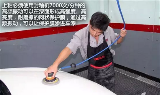 由于封釉的釉会渗透排泄到漆面内形成网状掩护布局,以是上釉必须利用封釉机7000次/分钟的高频振动可以在漆面形成高强度、高亮度以及耐磨擦的网状掩护膜,通过高频振动,可以让掩护膜渗进车漆。