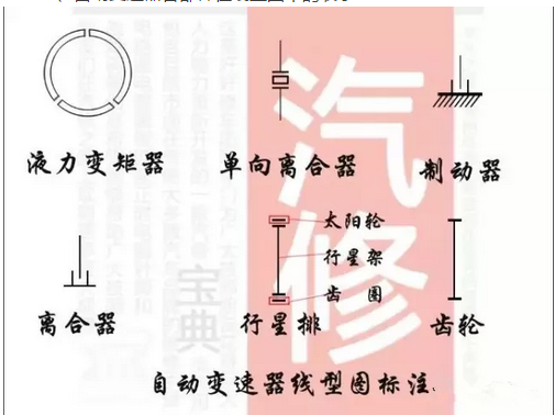 一、自动变速器各部件在线型图中的表示 在行星排中,最大的是行星架,其次是齿圈、太阳轮。行星架的齿数=齿圈的齿数+太阳轮的齿