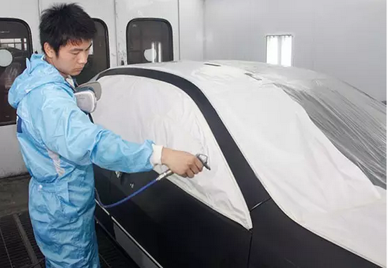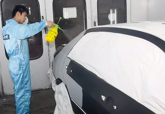 在喷涂环保水性漆之前,需要在车辆驶入烤漆房之后关闭烤漆房的大门,之后开启烤漆房的排风系统。与此同时,施工人员应当按照规定的要求穿好防护服。这样做是为了净化烤漆房内的环境并与外部的环境进行隔绝,以保证施工现场的基本清洁。