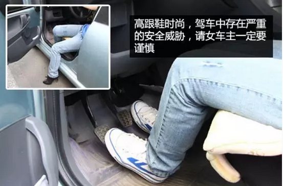 穿高跟鞋时的脚底与踏板之间只是点接触,不是面接触,驾驶人很难感觉踏板的回弹力,因此不好精确地感知踏板的位置,也不能精准地控制加速和制动的操作。