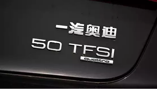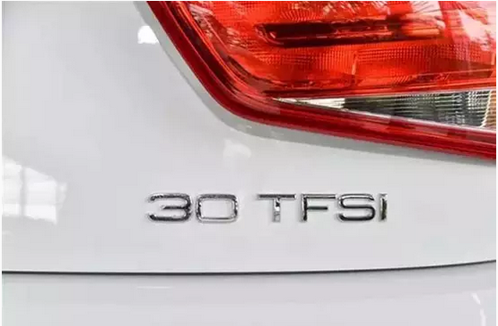 奥迪品牌左边标识的命名方式还算比较好辨别,而右边代表动力水平的标识就有些容易难以识别了。右边代表动力水平的标识为两位数字加上TFSI或FSI这几个字母。